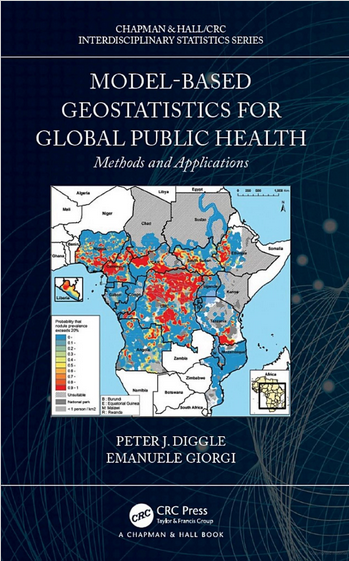 Model-based Geostatistics for Global Public Health: Methods and Applications (Diggle, P. J. and Giorgi E., 2020) provides an introductory account of model-based geostatistics, its implementation in open-source software and its application in public health research.