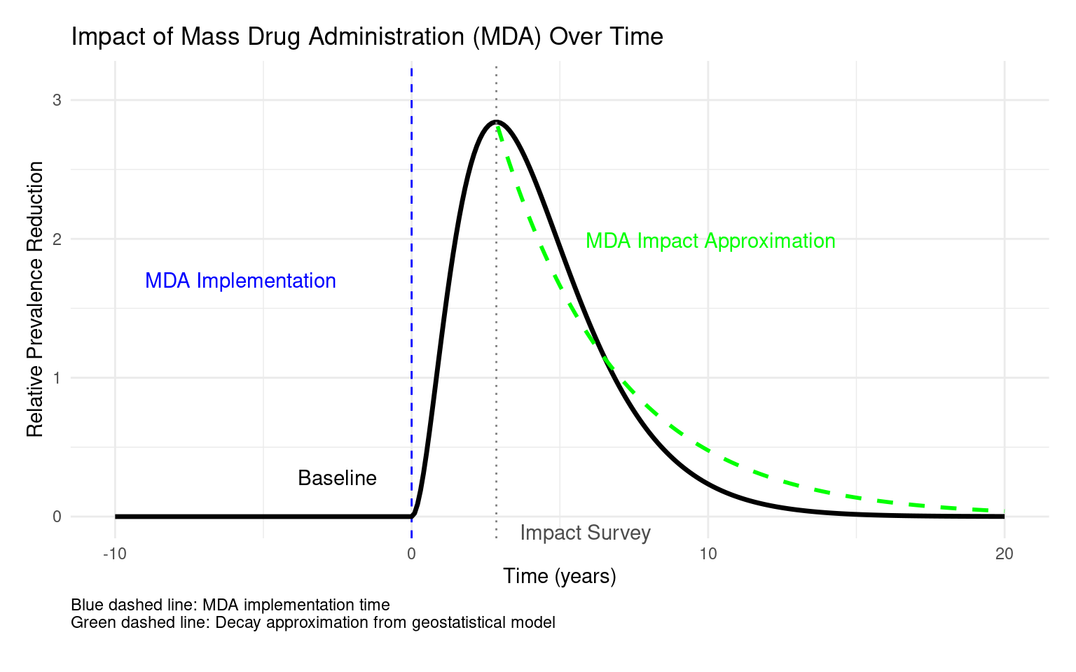 - \(I(x, u_j)\): indicator of MDA coverage at location \(x\) and time \(u_j\)
