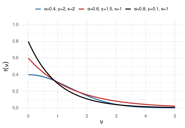 \[ f(v) = \alpha \exp\left\{ -\left(\frac{v}{\gamma}\right)^{\kappa} \right\} \]