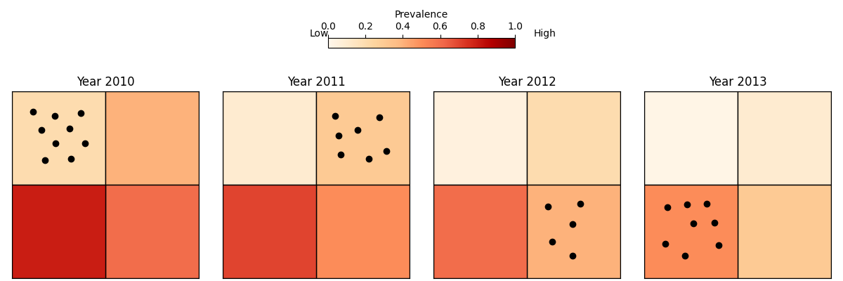 - Covariates (optional): \(d(x)\) (e.g. elevation, distance from waterways)
